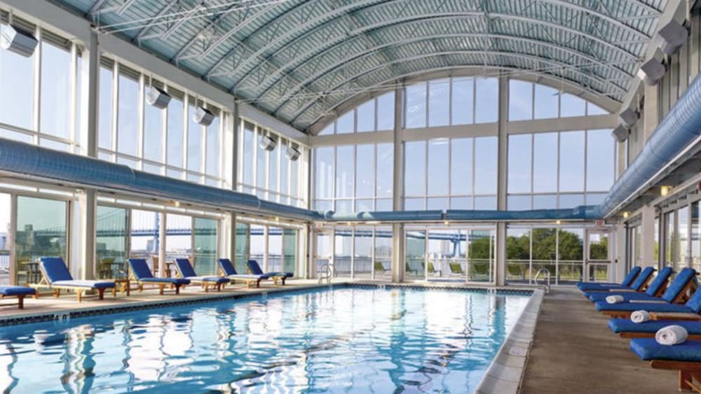 Our 25 meter Jr. Olympic sized swimming pool is the only regulation lap pool in a Center City condominium. Enjoy year round swimming in the glass enclosed atrium with large sliding doors that open to our riverfront deck in the warmer months. After your swim, take a dip in the Jacuzzi or enjoy some time in our steam room and sauna.
